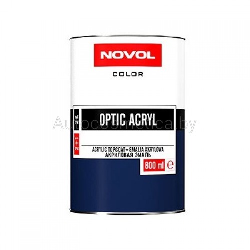 NOVOL OPTIC 2K 2+1 акриловая краска — это двух-компонентный элемент, наносящийся с помощью покрасочного пистолета. 1-й компонент — это эмаль,состоящая из пигментов в акр-ой смоле. 2-й компонент — отвердитель(продается отдельно), состоящий из изоцианиановой смолы с раств-м. Применяется на следующим поверхностях: грунты акриловые, эпоксидные и полиуриетановые, применяемые в реновации авто; старые покрытия из лака, а также термопластичные краски; полиэфиры. Пропорции для смешивания: Краска Optic с отвердителем Optic 2:1. Растворитель для акрилов — до 20% Стойкость смеси: при применении отвердителя «standart» около 6 ч. при температуре 20 С с отвердителем «fast» — около 2 ч при 20 С. Время высыхания: пыль: — 15 мин при 20 С или — 5 мин при 60 С в отлип — 2 ч при 20 С Полное отвердение достигается спустя 7 дней при 20 С