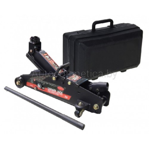 Вид домкрата подкатной с фиксацией. Механизм гидравлический. Грузоподъемность 2,5 тонны. Минимальная высота подъема 140 мм. Максимальная высота подъема 387 мм. В пластиковом кейсе.