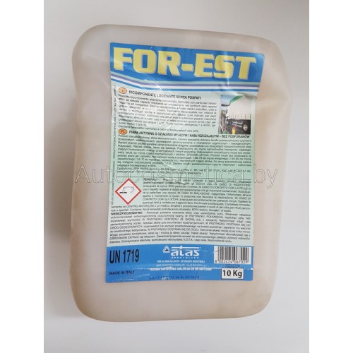 Высококонцентрированное щелочное моющее средство. Позволяет произвести мойку без использования мочалки или щетки при мойке автотранспорта. Средство двухкомпонентное, обезжиривает и чистит, эффективно при удалении органических или неорганических жирных пятен, пятен крови и нефтяных осадков на кузове, алюминиевых деталях. Содержит в своем составе ПАВ с повышенной диспергидрируемостью. FOR-EST рекомендован для мытья автомобилей, автопоездов, тентованных грузовиков, другого транспорта, а также используется в случаях, когда требуется избавится от сложных загрязнений.
