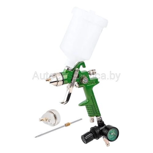 Краскораспылитель HVLP 2-в-1 для нанесения грунта и эмали. В комплекте идет 2 сопла - 1.4 и 1.7 mm.