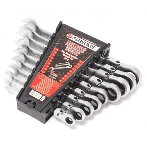 Набор ключей комбинированных трещоточных с шарниром 9пр. (8.10.12.13.14.16.17.18.19мм)в пластиковом держателе (F-51092F)