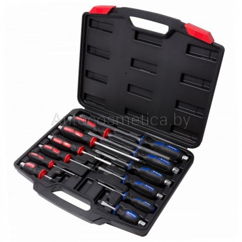 Набор отверток силовых ударных магнитных12пр. (SL: 6.5х38.3х75.5.5х75.6.5х100.8.0х150.10х200мм PH: 2х38.0х75. 1х75. 2х100. 3х150. 4х200мм). в кейсе (F-21310)