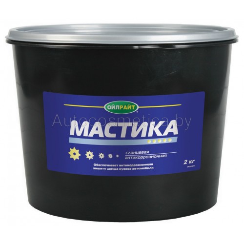 Битумная основа мастичной плёнки обеспечивает надежную гидроизоляцию, препятствуя проникновению влаги и дорожной соли к металлу. Минеральный наполнитель, входящий в состав сланцевой мастики, придает ей достаточную твёрдость и стойкость к истиранию.После нанесения образуется твердая гладкая матовая пленка черного цвета.