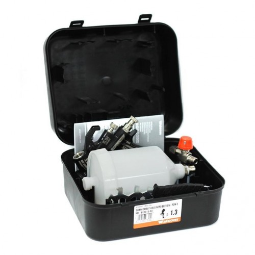 Модель SLIM KOMBAT NERO добавлена к классической линейке краскопультов SLIM и доступна в двух версиях HVLP, HALO/HTE, с такими же потреблением воздуха и высоким коэффициентом переноса (более 80% для грунтов, и 70% для базы и лака), что важно для получения покрытия высокого качества.