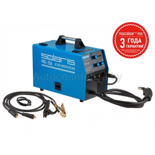 Полуавтомат сварочный Solaris MIG-206 (MIG/MMA) (220В встроенная горелка 2 м смена полярности)