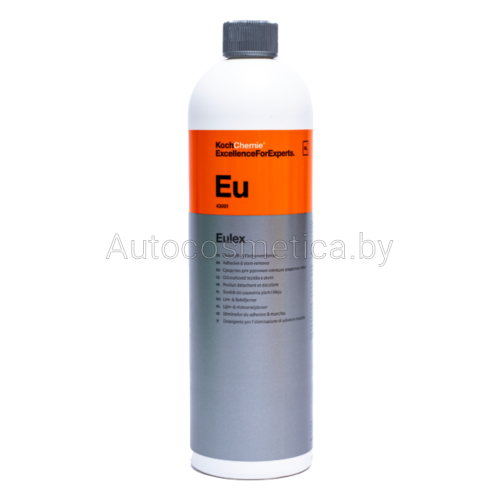 Eulex от Koch Chemie - это профессиональный очиститель для быстрого избавления от пятен краски и остатков клея, особенно после удаления пятен от наклеек на автомобилях. Легко удаляет остатки клея со стекла после растонирования. Отлично удаляет с ЛКП чужеродную краску от рисунков «граффити» и свежую краску от дорожной разметки. Очищает ЛКП от приставшей резины, древесной и дорожной смолы. Внутри салона применяется для удаления жирных пятен, жвачки, чужеродной краски на ткани. EULEX не включает в себя галогенные углеводы.